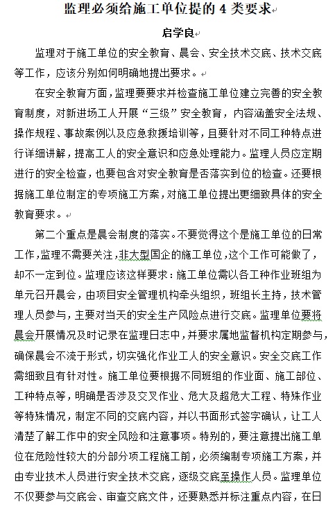 監(jiān)理必須給施工單位提的4類要求——啟學(xué)良