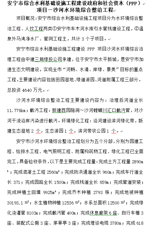 安寧市綜合水利基礎(chǔ)設(shè)施工程建設(shè)政府和社會資本(PPP)項目—沙河水環(huán)境綜合整治工程