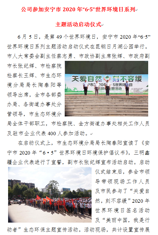 公司參加安寧市2020年“6?5”世界環(huán)境日系列