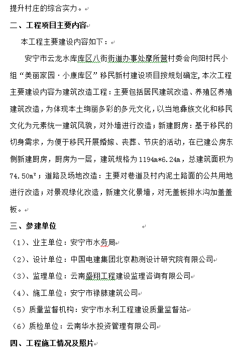 安寧市云龍水庫庫區(qū)八街街道辦事處摩所營村委會向陽村民小組“美麗家園?小康庫區(qū)”移民新村建設項目