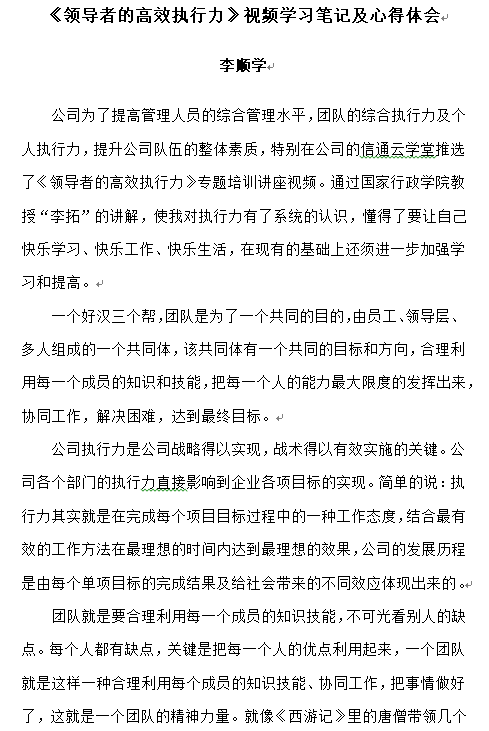 《領導者的高效執(zhí)行力》視頻學習筆記及心得體會——李順學