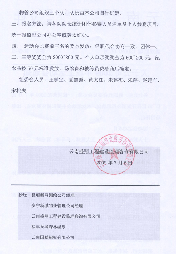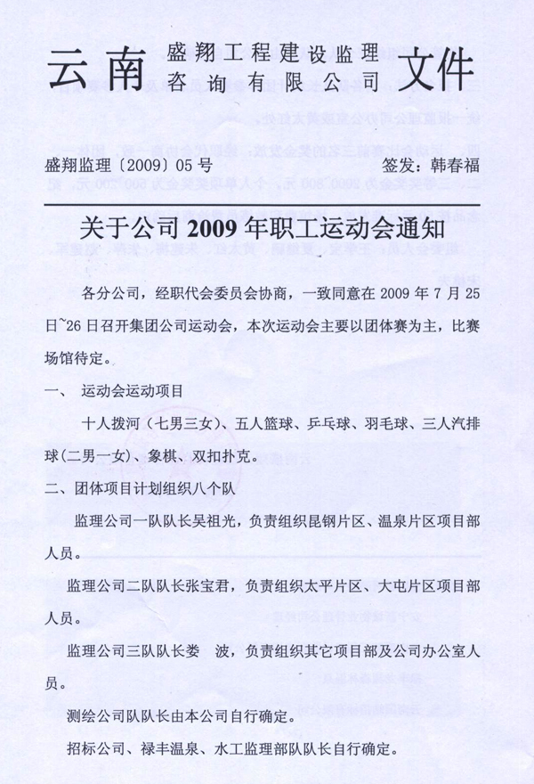 關于公司2009年職工運動會通知