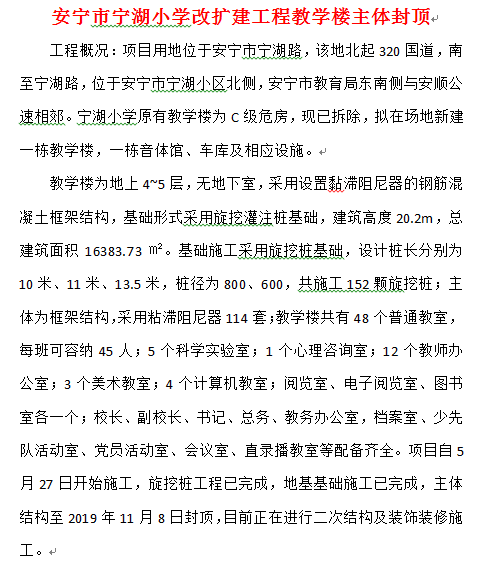 安寧市寧湖小學(xué)改擴(kuò)建工程教學(xué)樓主體封頂