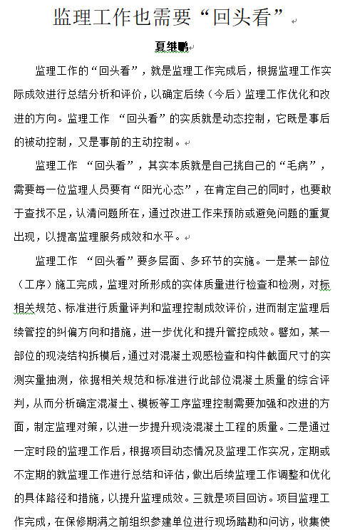 監(jiān)理工作也需要“回頭看”——夏繼鵬
