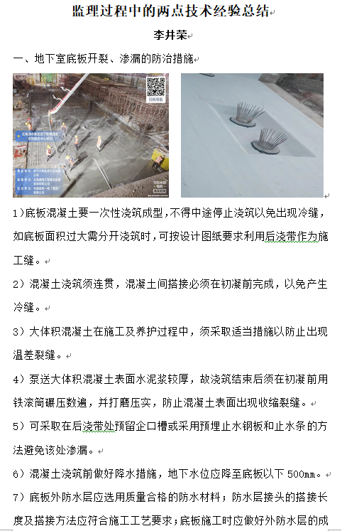 監(jiān)理過程中的兩點技術(shù)經(jīng)驗總結(jié)——李井榮