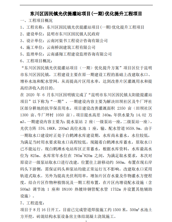 東川區(qū)因民鎮(zhèn)光伏提灌站項(xiàng)目(一期)優(yōu)化提升工程項(xiàng)目