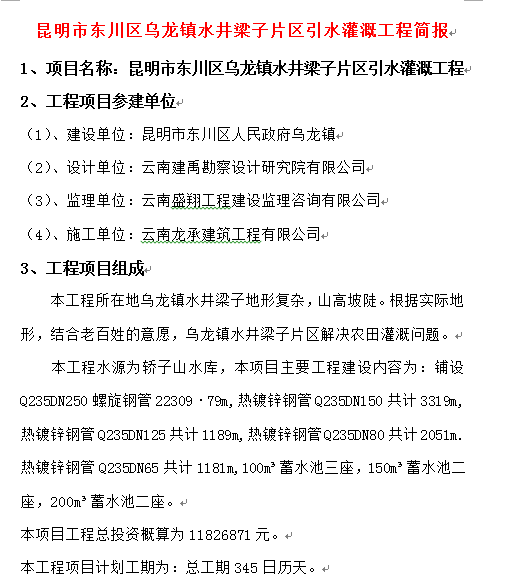 昆明市東川區(qū)烏龍鎮(zhèn)水井梁子片區(qū)引水灌溉工程簡(jiǎn)報(bào)