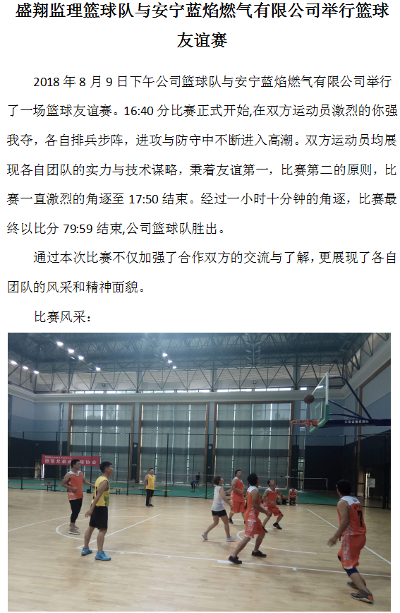活力賽場 賽出團結 ——盛翔監(jiān)理公司和藍焰燃氣公司開展籃球友誼賽