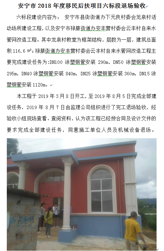 安寧市2018年度移民后扶項(xiàng)目六標(biāo)段退場(chǎng)驗(yàn)收
