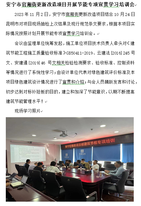 安寧市官廂街更新改造項(xiàng)目開展節(jié)能專項(xiàng)宣貫學(xué)習(xí)培訓(xùn)會