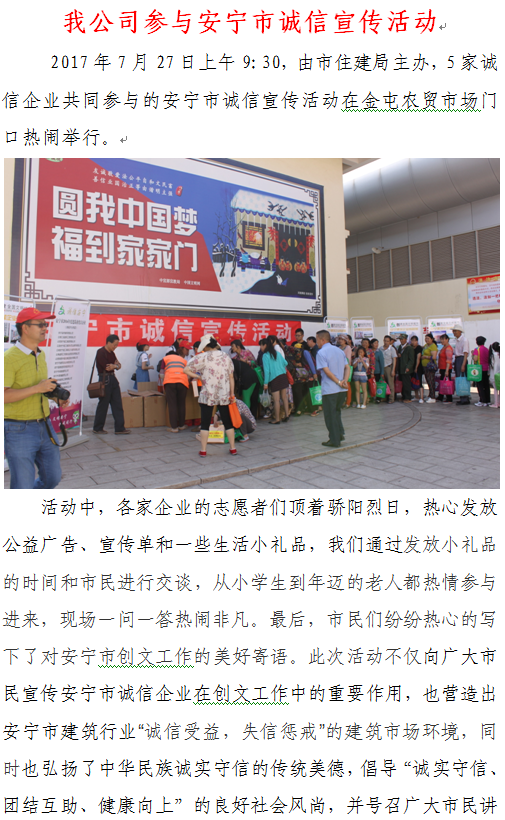 我公司參與安寧市誠(chéng)信宣傳活動(dòng)