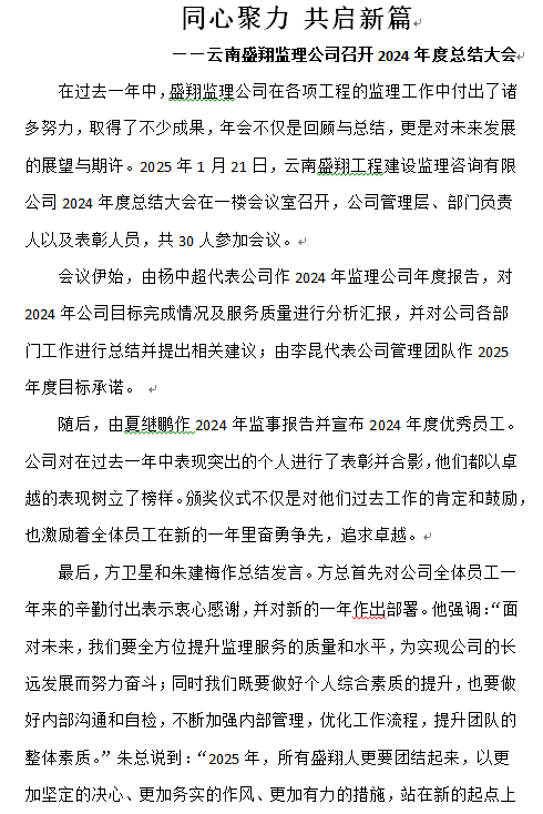 同心聚力 共啟新篇 ——云南盛翔監(jiān)理公司召開2024年度總結大會