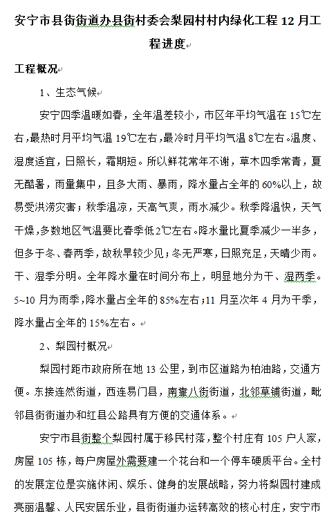 安寧市縣街街道辦縣街村委會梨園村村內(nèi)綠化工程12月工程進(jìn)度