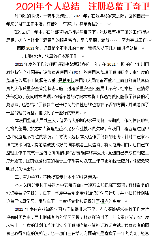 注冊(cè)總監(jiān)丁奇衛(wèi)2021年個(gè)人總結(jié)