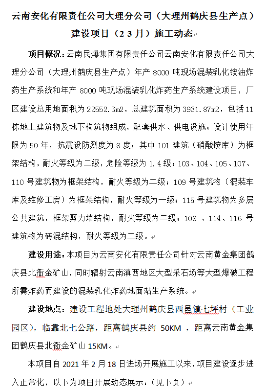云南安化有限責(zé)任公司大理分公司(大理州鶴慶縣生產(chǎn)點)建設(shè)項目(2-3月)施工動態(tài)