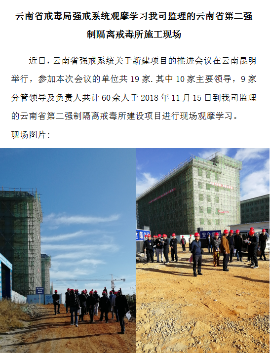 云南省戒毒局強戒系統(tǒng)觀摩學(xué)習(xí)我司監(jiān)理的云南省第二強制隔離戒毒所施工現(xiàn)場