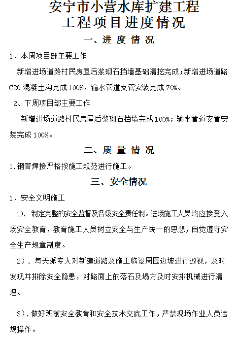 安寧市小營(yíng)水庫(kù)擴(kuò)建工程 工程項(xiàng)目進(jìn)度情況