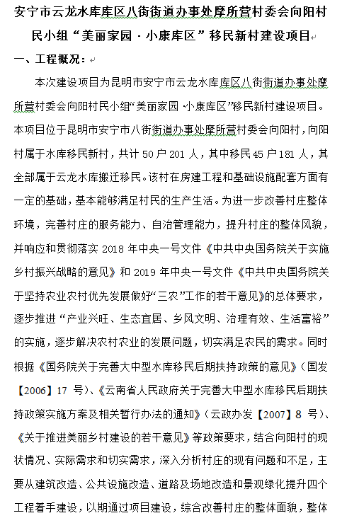 安寧市云龍水庫庫區(qū)八街街道辦事處摩所營村委會向陽村民小組“美麗家園?小康庫區(qū)”移民新村建設項目