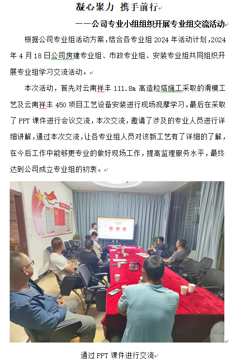 凝心聚力 攜手前行 ——公司專業(yè)小組組織開展專業(yè)組交流活動