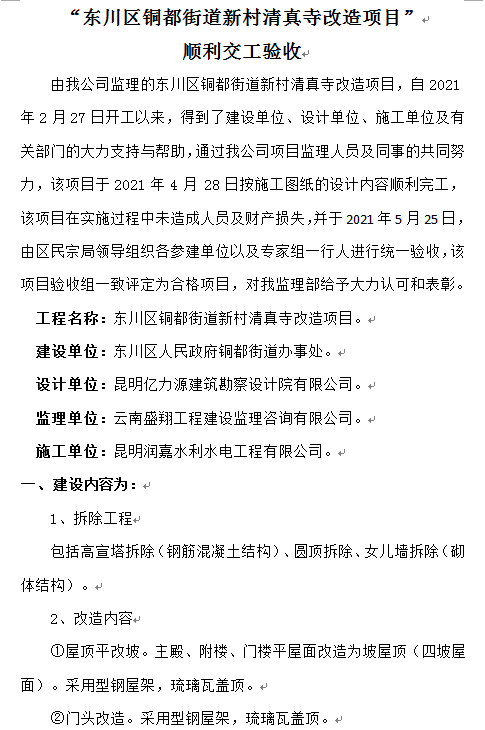 “東川區(qū)銅都街道新村清真寺改造項目” 順利交工驗收