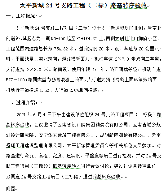 太平新城24號(hào)支路工程(二標(biāo))路基轉(zhuǎn)序驗(yàn)收