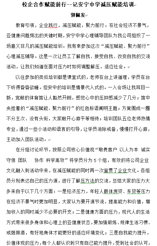 校企合作賦能前行 記安寧中學(xué)減壓賦能培訓(xùn) ——郭佩發(fā)