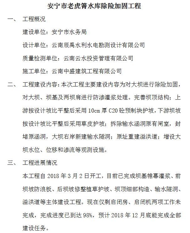 安寧市老虎箐水庫除險加固工程