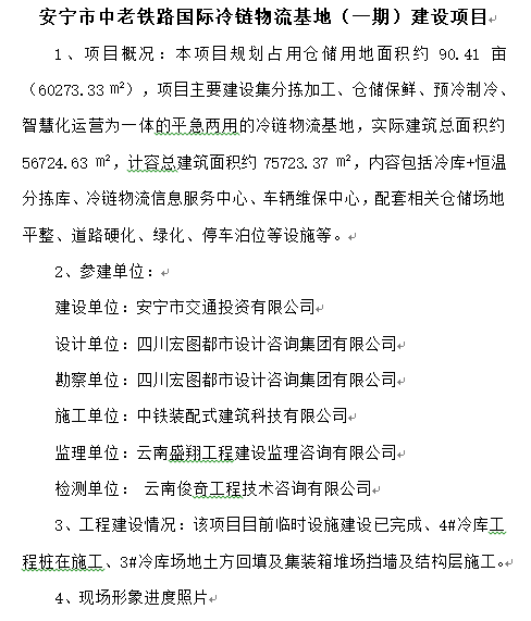 安寧市中老鐵路國際冷鏈物流基地(一期)建設(shè)項目