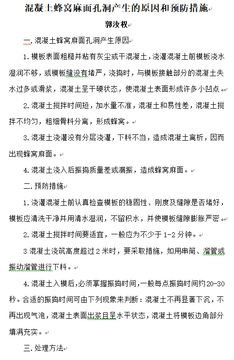 混凝土蜂窩麻面孔洞產(chǎn)生的原因和預(yù)防措施——郭汝權(quán)