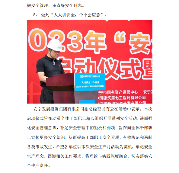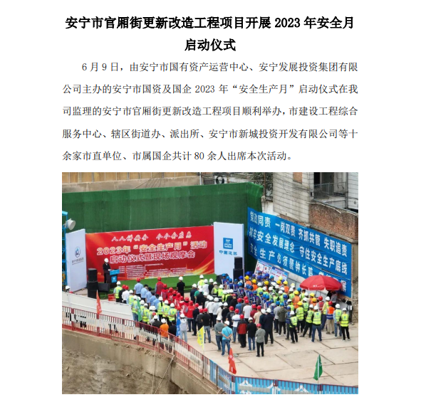 安寧市官廂街更新改造工程項(xiàng)目開展2023年安全月啟動(dòng)儀式