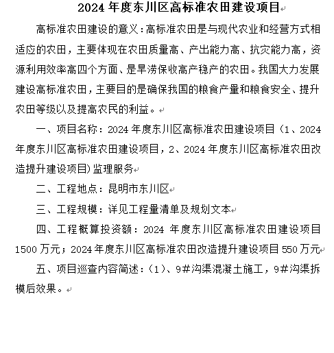 2024年度東川區(qū)高標準農田改造提升建設項目