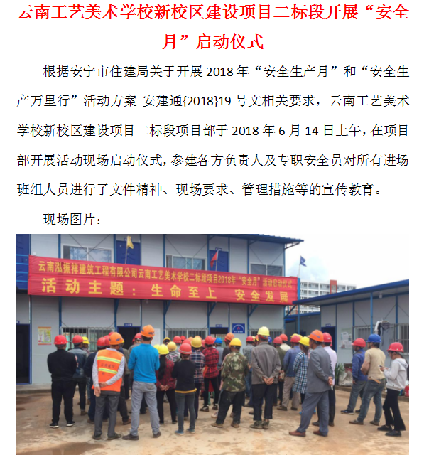 云南工藝美術(shù)學(xué)校新校區(qū)建設(shè)項(xiàng)目二標(biāo)段開展“安全月”啟動(dòng)儀式