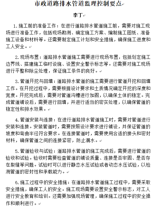 市政道路排水管道監(jiān)理控制要點——李丁