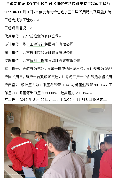 “俊發(fā)御龍灣住宅小區(qū)”居民用燃?xì)饧霸O(shè)施安裝工程竣工驗(yàn)收