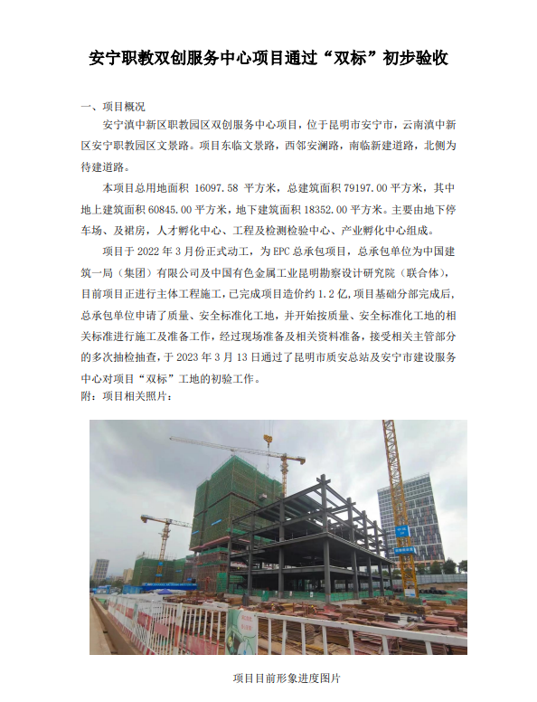 安寧職教雙創(chuàng)服務(wù)中心項(xiàng)目通過“雙標(biāo)”初步驗(yàn)收