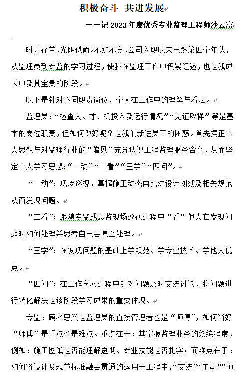 積極奮斗 共進(jìn)發(fā)展 ——記2023年度優(yōu)秀專業(yè)監(jiān)理工程師沙云富