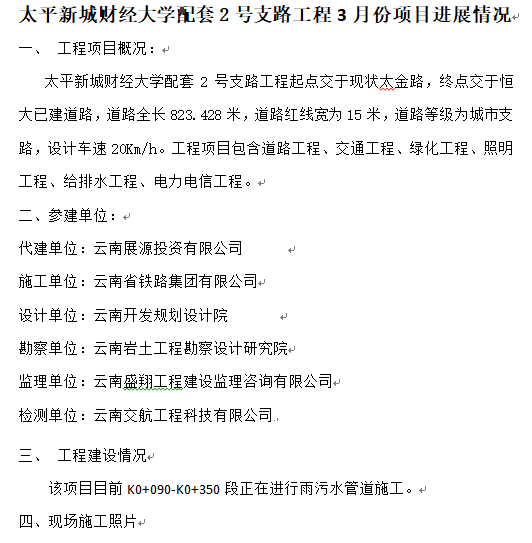 太平新城財(cái)經(jīng)大學(xué)配套2號(hào)支路工程3月份項(xiàng)目進(jìn)展情況