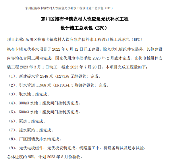東川區(qū)拖布卡鎮(zhèn)農(nóng)村人飲應急光伏補水工程 設計施工總承包(EPC)
