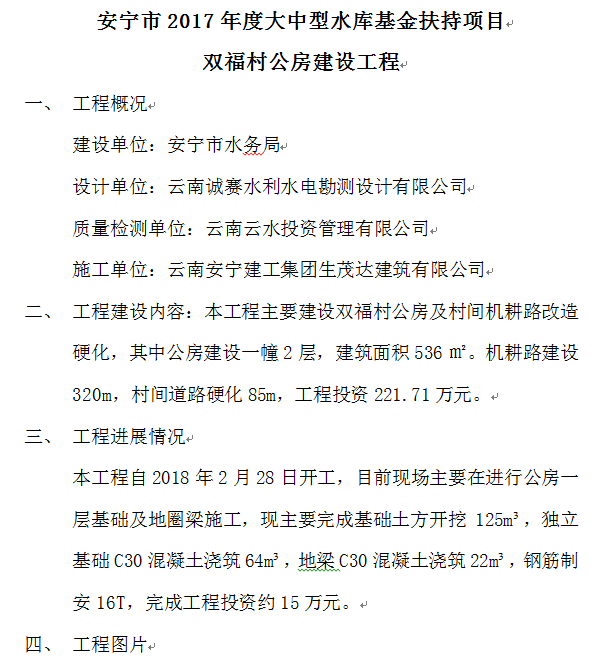 安寧市2017年度大中型水庫基金扶持項(xiàng)目 雙福村公房建設(shè)工程進(jìn)展情況