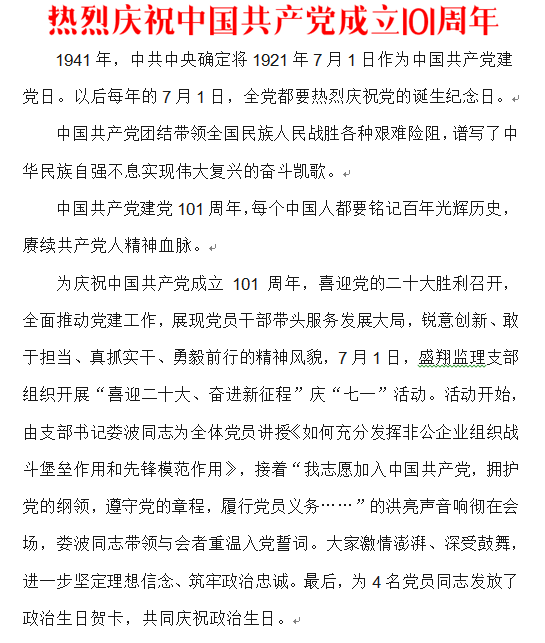熱烈慶祝中國共產(chǎn)黨成立101周年
