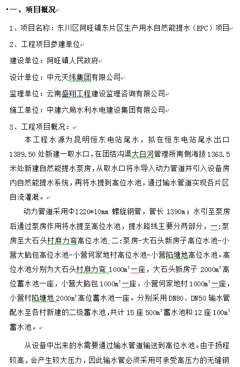 東川區(qū)阿旺鎮(zhèn)東片區(qū)生產(chǎn)用水自然能提水(EPC)項(xiàng)目