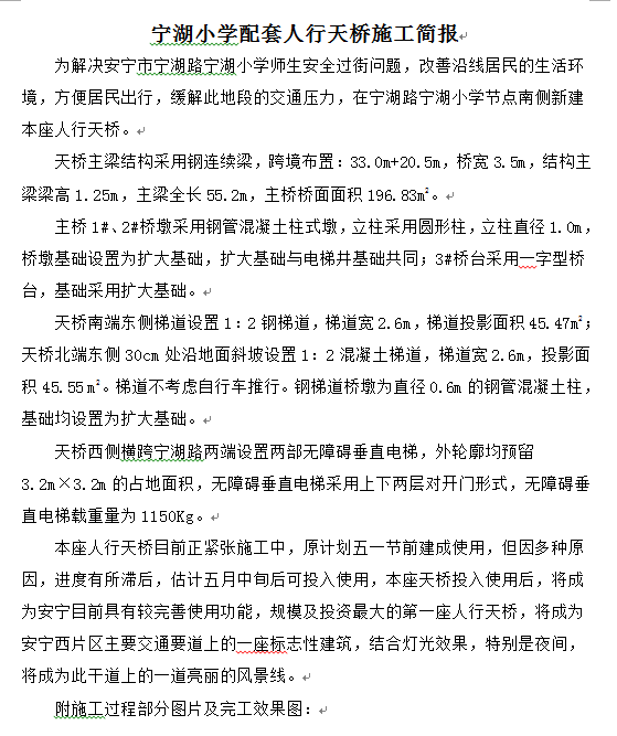 寧湖小學(xué)配套人行天橋施工簡報(bào)