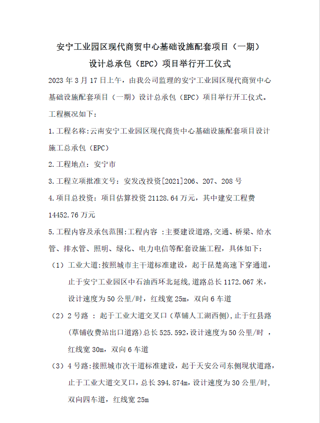 安寧工業(yè)園區(qū)現(xiàn)代商貿(mào)中心基礎(chǔ)設(shè)施配套項(xiàng)目(一期) 設(shè)計(jì)總承包(EPC)項(xiàng)目舉行開工儀式