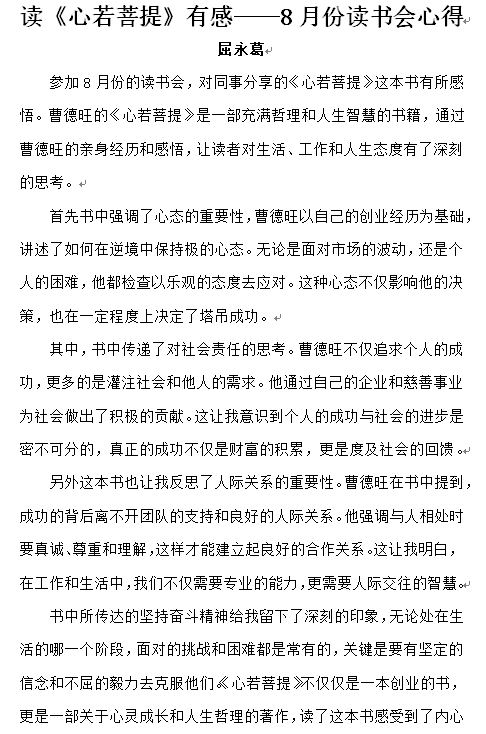 讀《心若菩提》有感 8月份讀書會(huì)心得——屈永葛
