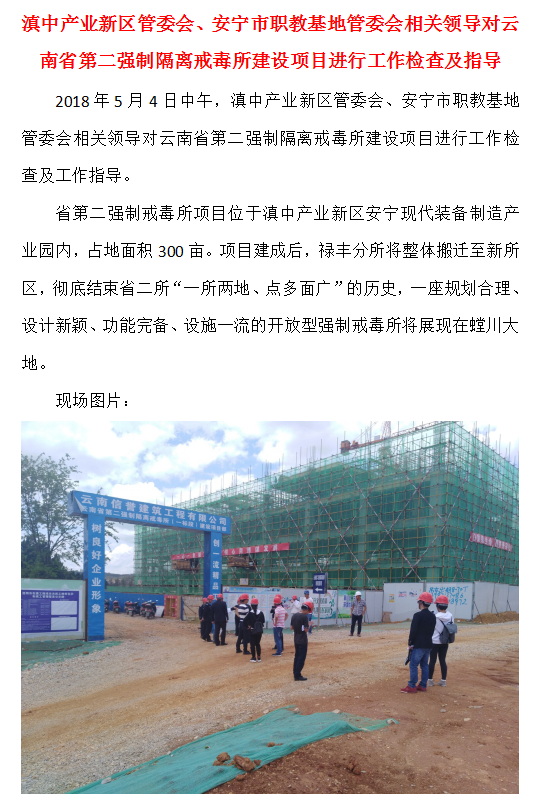 滇中產(chǎn)業(yè)新區(qū)管委會、安寧市職教基地管委會相關(guān)領(lǐng)導(dǎo)對云南省第二強(qiáng)制隔離戒毒所建設(shè)項(xiàng)目進(jìn)行工作檢查及指導(dǎo)